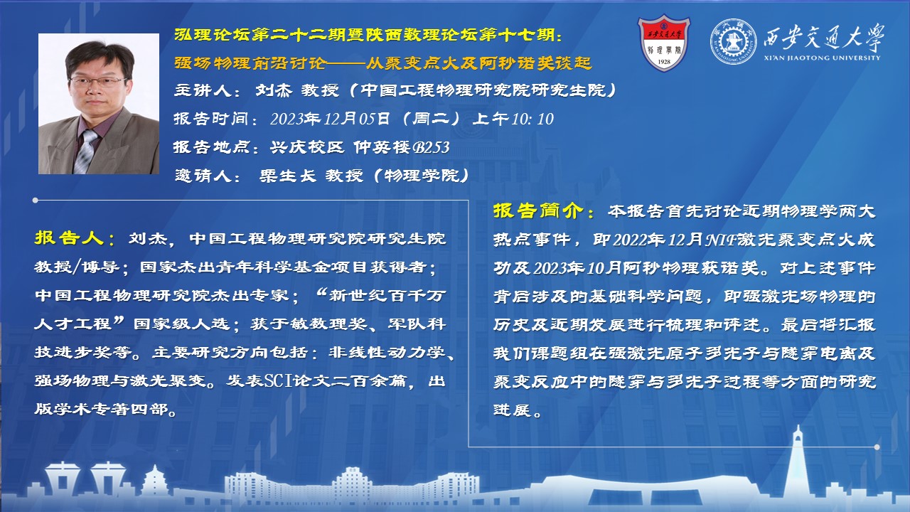 【泓理论坛第二十二期暨陕西数理论坛第十七期】 强场物理前沿讨论——从聚变点火及阿秒诺奖谈起