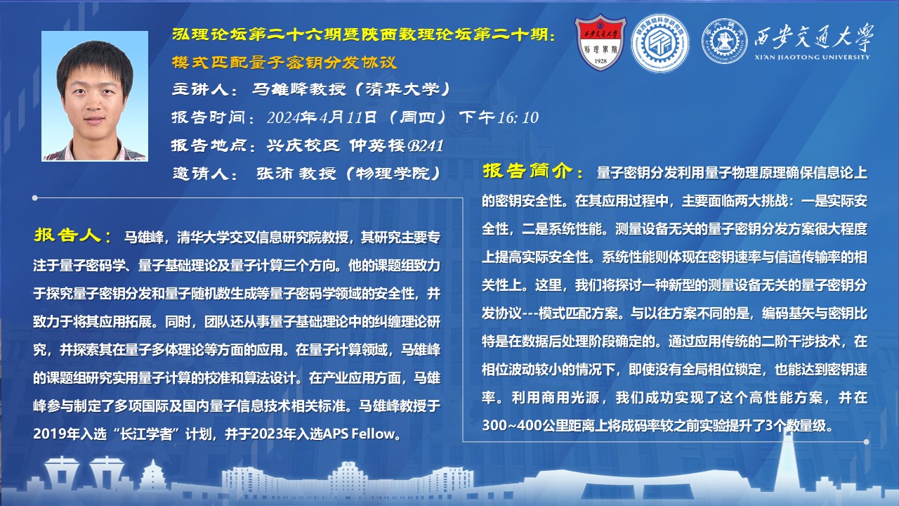 【泓理论坛第二十六期暨陕西数理论坛第二十期】——模式匹配量子密钥分发协议