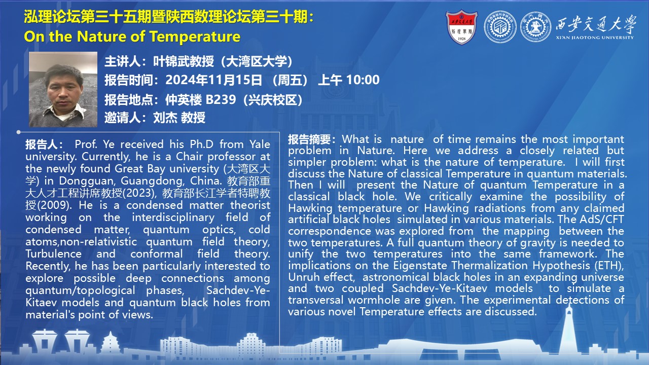 【泓理论坛第三十五期暨陕西数理论坛第三十期】—— On the Nature of Temperature