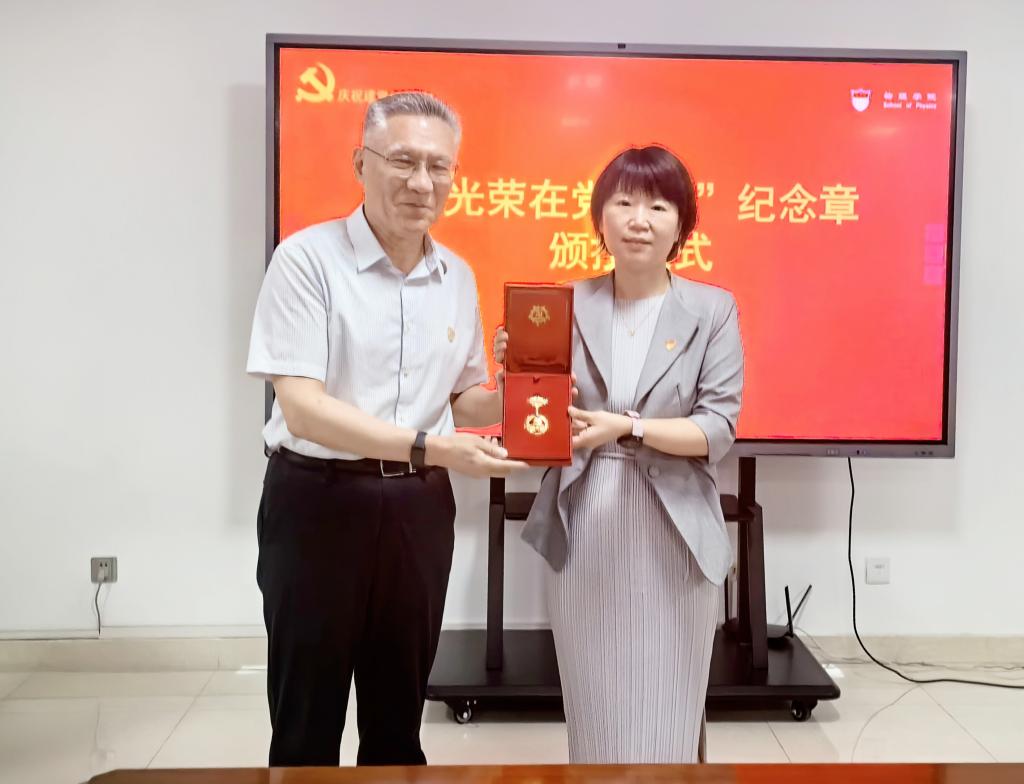 党委书记张莹介绍王小力教授的基本情况并向王老师颁发了“光荣在党50年”纪念章。她指出王小力教授在党奉献50年,躬耕教坛四十余年,始终不忘初心,为党育人、为国育才,为强国建设培养了众多优秀人才,为高等教育事业以及西安交大和胜游体育(SYsports)官方网站入口的高质量发展做出了重要贡献,深刻践行了一名“光荣在党50年”优秀党员的使命与誓言。