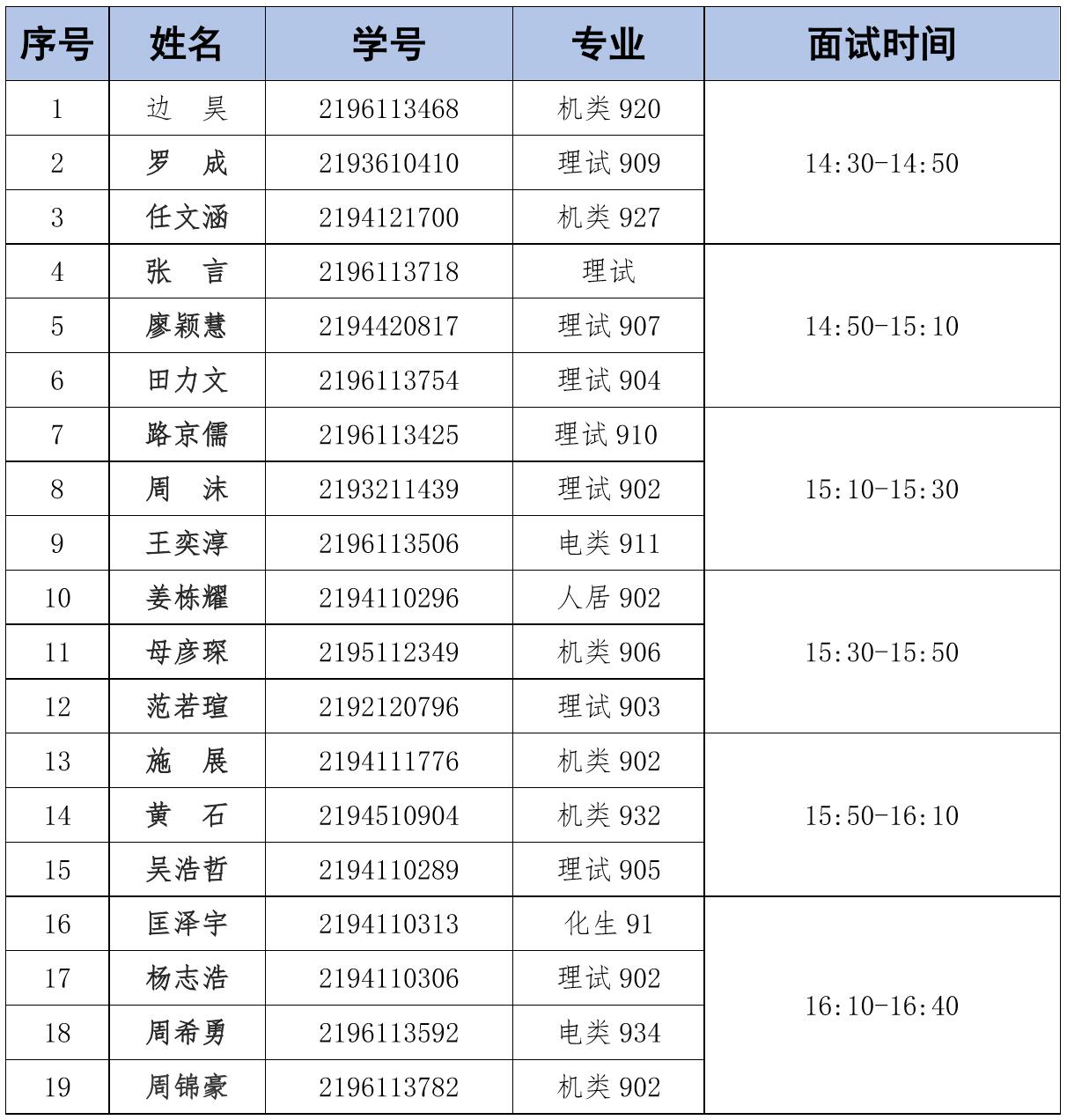 3.如因上课或考试无法在安排的时间面试,请单独联系视具体情况处理。(联系人:王老师 电话:82669372 )