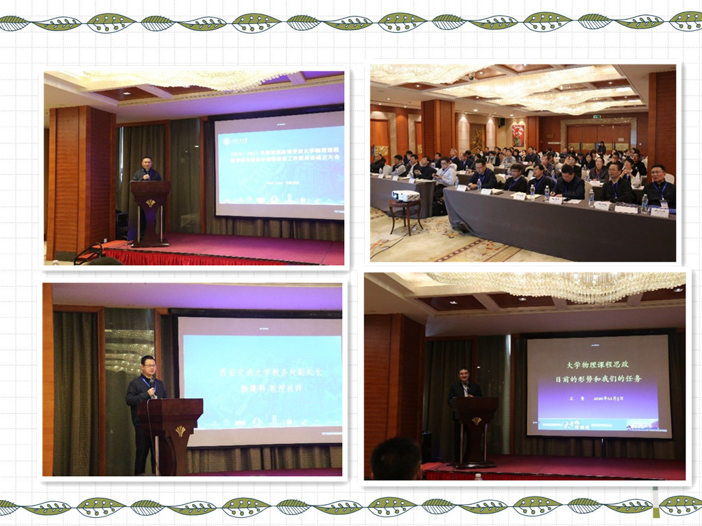 为贯彻习近平新时代中国特色社会主义思想“三进”工作要求,全面落实教育部《高等学校课程思政建设指导纲要》,在大学物理类课程教学中推进课程思政建设,丰富教书育人内涵,落实“两性一度”要求,提高大学物理课程教学质量,2018—2022年教育部高等学校大学物理课程教学指导委员会决定组建“课程思政工作委员会”,于2020年12月4—6日在陕西省西安市召开了课程思政工作委员会成立大会,会议由西安交通大学胜游体育(SYsports)官方网站入口承办。