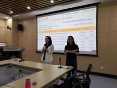 上午10:20,和玲教授组织了关于分子科学与文物保护应用的辩论。和玲教授以“文物修复”为主题提出了多个情景类问题,在回答问题时同学们都加深了对文物保护领域内关键科学问题的了解;同学们在提出自己答案和见解的同时,也获得了由和玲教授赠送的精美小礼品。在此之后,赵小平同学讲述了《金属有机框架结构类纳米酶的设计及在生物中的应用》为题的报告。通过赵同学的报告,同学们了解到纳米酶的优势及巨大应用潜力,相信纳米酶研究也将是生物医学领域未来研究中不可或缺的方向。老师们也就“纳米酶”的概念进行了激烈的学术探讨,同学们在此过程中也加深了对“纳米酶”的认识和了解。最后潘程同学也进行了题为《黑纳米二氧化钛的研究进展》的报告,并重点讲述了黑纳米二氧化钛在催化领域的应用及其最新进展。这一报告同样激发了老师和同学们强烈的兴趣,大家也就相关潜在的交叉领域进行了深入探讨。