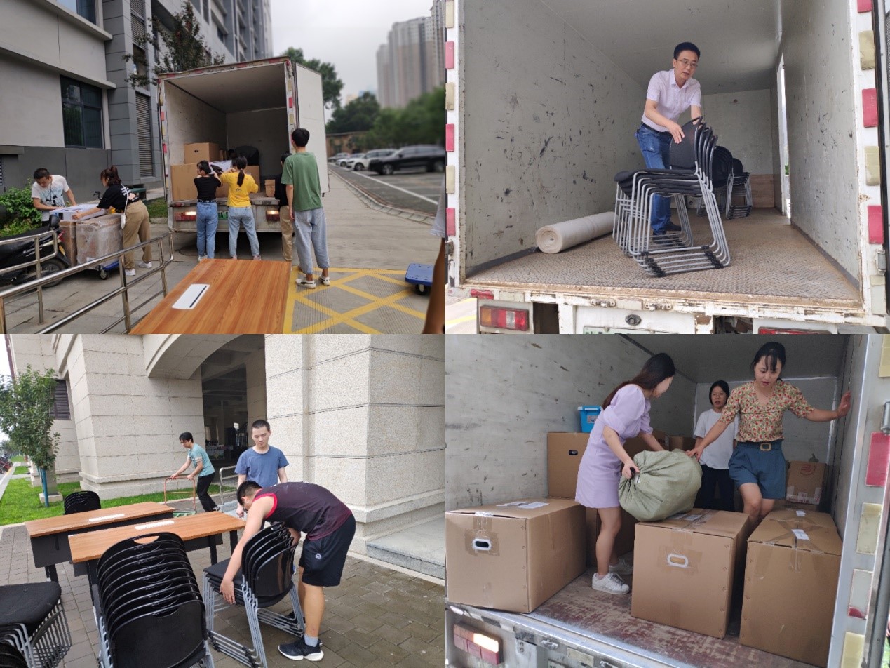 张沛副书记对于研究生搬迁工作高度重视,从搬迁筹备工作开始全程协调,从兴庆校区到创新港全程指挥,现场亲自搬运物资,正如他在仲英楼前给同学们讲道:“今天是同学们搬新家的好日子,希望大家搬入新家能有更加美好的生活,入驻创新港实验平台科研工作能有新起点、新征程,为新港新家建设贡献智慧与力量。”