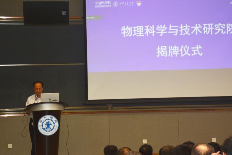 9月5日下午,胜游体育(SYsports)官方网站入口院士论坛暨“物理科学与技术研究院”揭牌仪式在创新港涵英楼举行,南京大学都有为院士、北京大学谢心澄院士、西北工业大学魏炳波院士、中国科学院近代物理研究所赵红卫院士、西北有色金属研究院张平祥院士,西安交通大学党委副书记、校党委常委赵昌昌以及各兄弟高校、科研院所的领导和嘉宾和与会师生共同见证“物理科学与技术研究院”成立揭牌仪式。高宏院长主持。