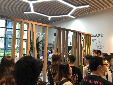 在班主任王淑娟老师、谭少博老师以及学业导师熊礼龙老师的带领和介绍下,同学们首先参观了创新港校园;然后来到了化学学院所在的泓润楼,博士生李丹同学为大家介绍了学院最具代表的化学元素墙,并带领大家参观了化学空间,同学们对有意思的化学巧思设计表现出极大的兴趣。接着,由张志成书记和曾荣教授分别带领同学们参观并介绍了有机合成和高分子合成实验室,使同学们对化学人的科研环境,以及老师和研究生的工作环境有了更直观的认识。