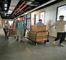 搬迁过程中,大家难掩激动,心潮澎湃,在工作交流平台中争相分享搬家心得,有人介绍搬家专业服务热情的师傅,有人介绍性价比高的窗帘购买店,有人介绍打包经验……前期入驻的老师事无巨细殷殷叮嘱,锁好门窗、注意防盗、避免划伤电梯、地面……
