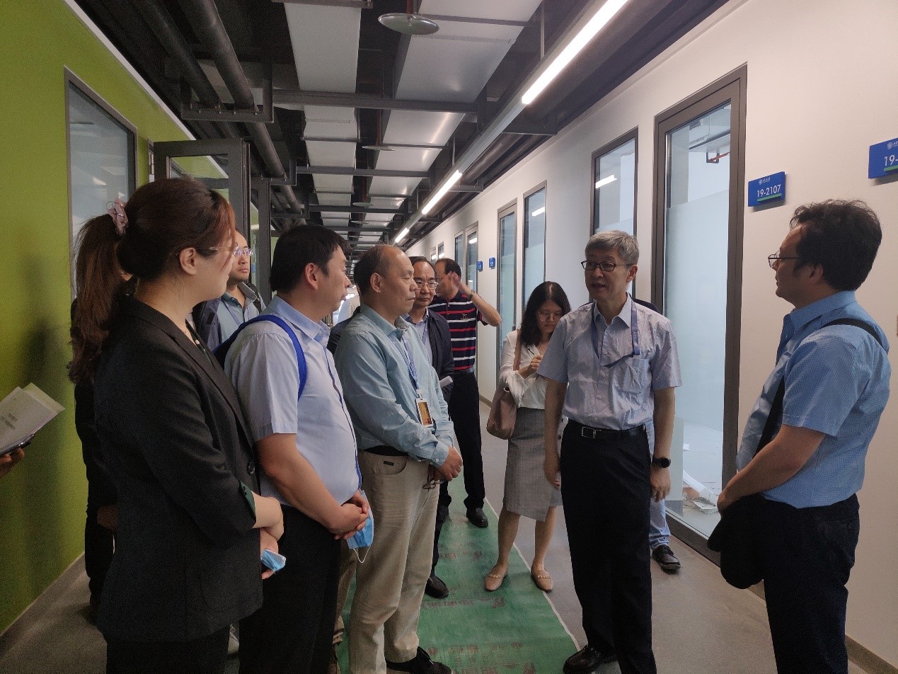 5月19日上午,校党委书记张迈曾和党、校办、宣传部等单位负责人一行来到创新港理化研究院19号巨构,现场调研指导文化环境和科研平台建设。理学院副院长赵永涛、院办主任曲哲、化学学科主任丁书江、青年教师及学科秘书等陪同。