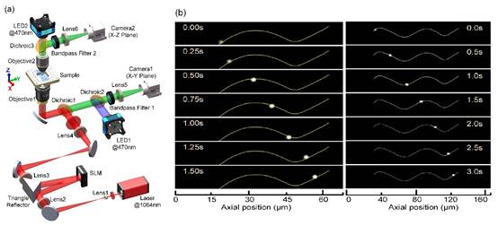 该研究成果以《轴平面同时光学捕获与成像:最新进展综述》(Simultaneous optical trapping and imaging in the axial plane: a review of current progress)为题、以关键问题综述(Key Issue Review)的形式发表在物理类国际顶级期刊Reports on Progress in Physics(影响因子:16.620)上。论文首先分析了传统光学捕获技术的局限,综述了获取轴向信息的常用方法和实现轴平面多光阱的常用算法,详细介绍了研究团队在轴平面光学捕获与成像方面所取得的重要研究成果,最后讨论了该研究成果在多个研究领域的潜在应用。