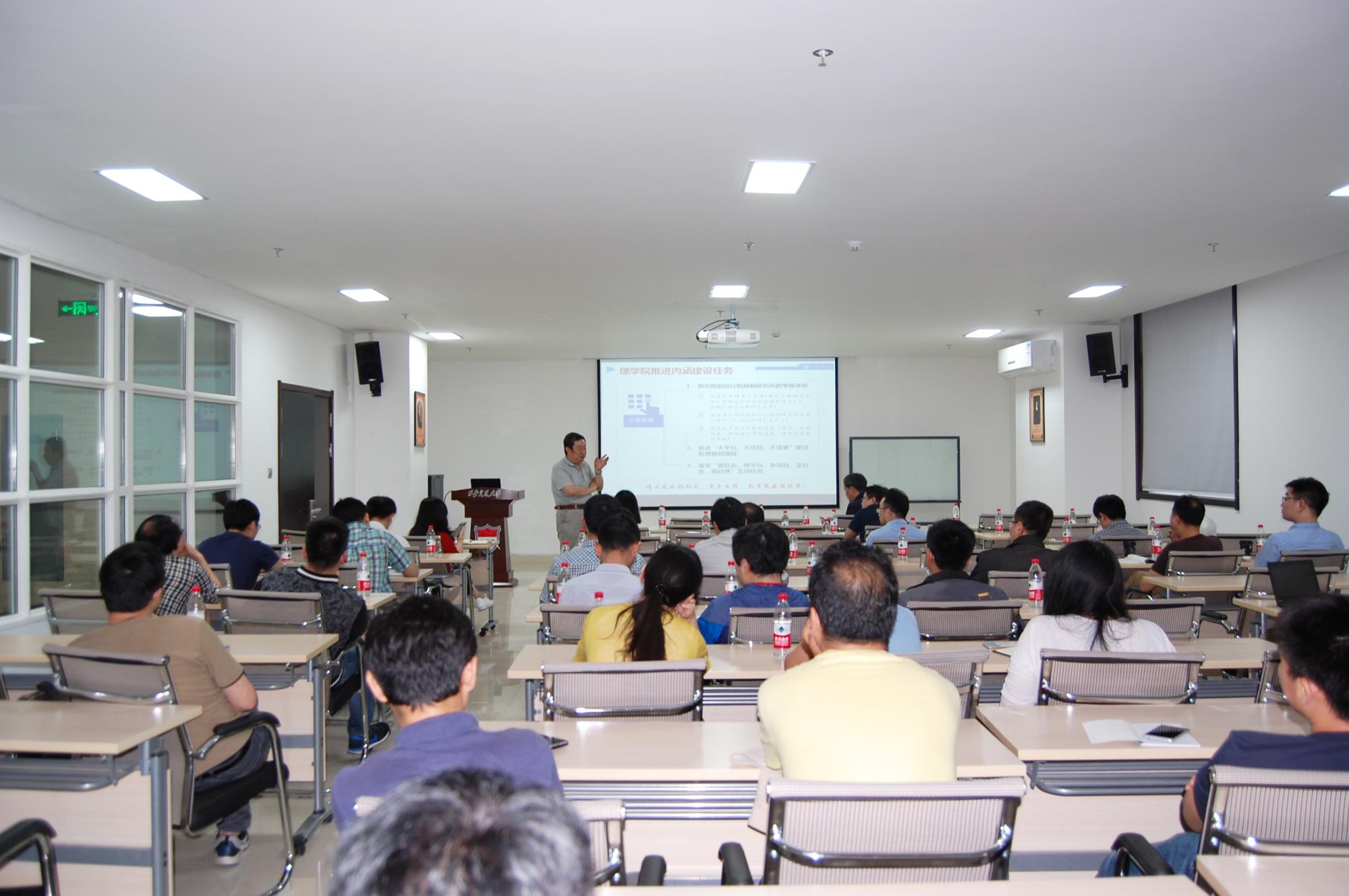 孙占波副院长首先介绍了学校的整体布局,传达了张迈曾书记强调的当前无论是大背景还是小环境,国家和学校都处在一个最好的发展时期,希望我们年轻教师能抓住机遇、顺应态势,紧扣学校对创新港发展的定位和要求,精心筹划,真抓实干,抢占科研制高点,助力世界一流大学建设;详细解读了学校出台《西安交通大学基层科研组织建设指导意见》,从组织架构、改革目的、设置要求、承担任务、运行机制、资源配给六方面解读了意见内涵;介绍了理学院从研究院的设立及基本运行机制、研究所考核评价的制定先后进行了三次方案的调整过程以及从组建队伍、建设平台、争取项目等方面汇报了研究院和研究所的建设构想。