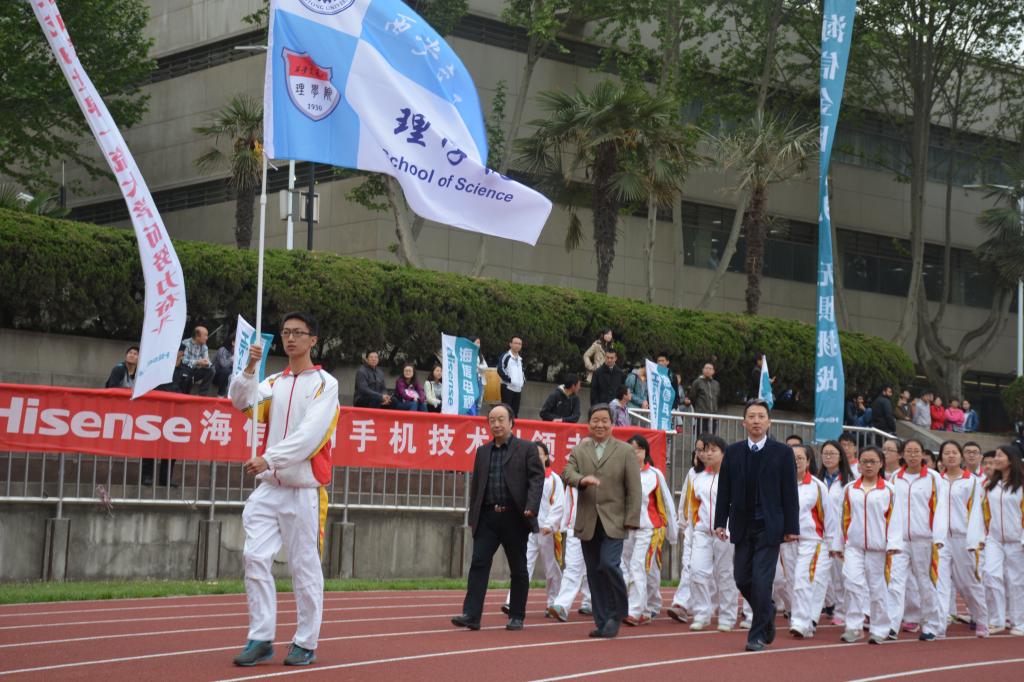 ,西安交通大学第54届田径运动会在东田径场盛大开幕。理学院运动健儿,斗志昂扬,勇于拼搏。在每一位师生的努力下,理学院获得了研究生组团体第七名,学院获得“优秀组织奖”。博1309班王花同学在女子标枪的赛事中,成功卫冕,连续三年夺得该项目的冠军,团体项目跳大绳获得第2名的历史最好成绩。其他同学在各自项目中也都有不俗表现。我院教职工参加了所有比赛项目并取得佳绩。在教工6×60米抱球跑比赛中,我院教工张扬、杨生春、肖春辉、张彦峰、苗慧、许敏炜等6位老师取得了运动会开赛的第一枚奖牌并获得了该项目的第一名;由张扬、杨生春、肖春辉、许敏炜等4位老师参加的教工男子4×100米接力赛中取得了第四名;在教工男子拍篮球跑,肖春辉老师获得第三名,刘杰老师获得第八名;在拔河团体赛比赛中,我院选手不畏强手,最终获得第九名。