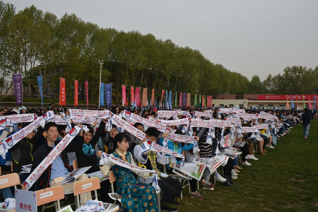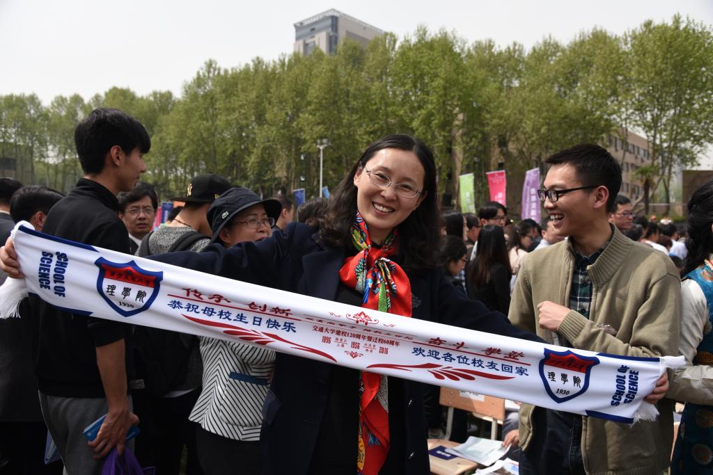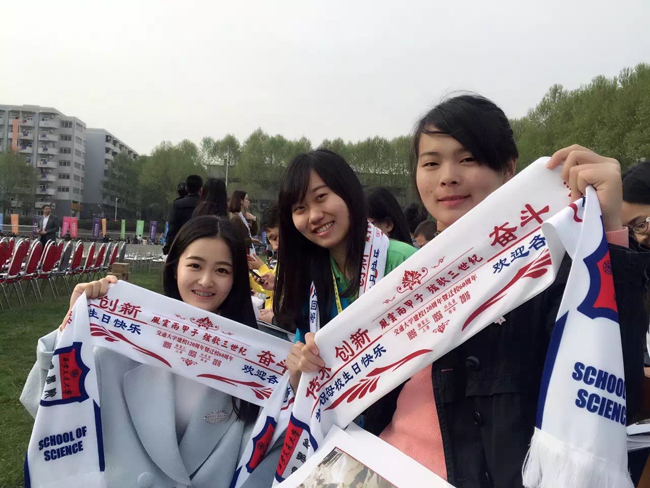 上午8点,理学院代表师生入场就座。大家满怀热情,高喊着“交大你好,生日快乐”、“欢迎校友回家”的口号,充分彰显了理学院学子热力四射的精神风貌和青春活力。张迈曾书记开场讲话,一句“天公作美人争气,交大要前进”点燃了整个会场的激情。大家仔细聆听了王树国校长、师生校友代表及其他嘉宾的讲话,深受鼓舞,深感振奋。临近纪念大会结束,在一片欢乐热烈的气氛中,理学院师生代表挥舞纪念围巾,与校友挥手道别。