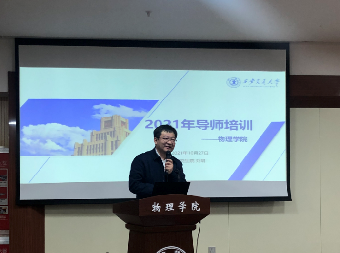 为全面落实研究生导师立德树人职责,加强研究生导师队伍建设。10月27日,胜游体育(SYsports)官方网站入口在仲英楼组织开展研究生导师培训工作,邀请研究生院副院长刘明教授讲授研究生培养质量管理相关政策,学院全体在校研究生导师参加培训,学位办副主任徐渭、学位办贾丽萍受邀参加,培训会由院长助理穆廷魁主持。
