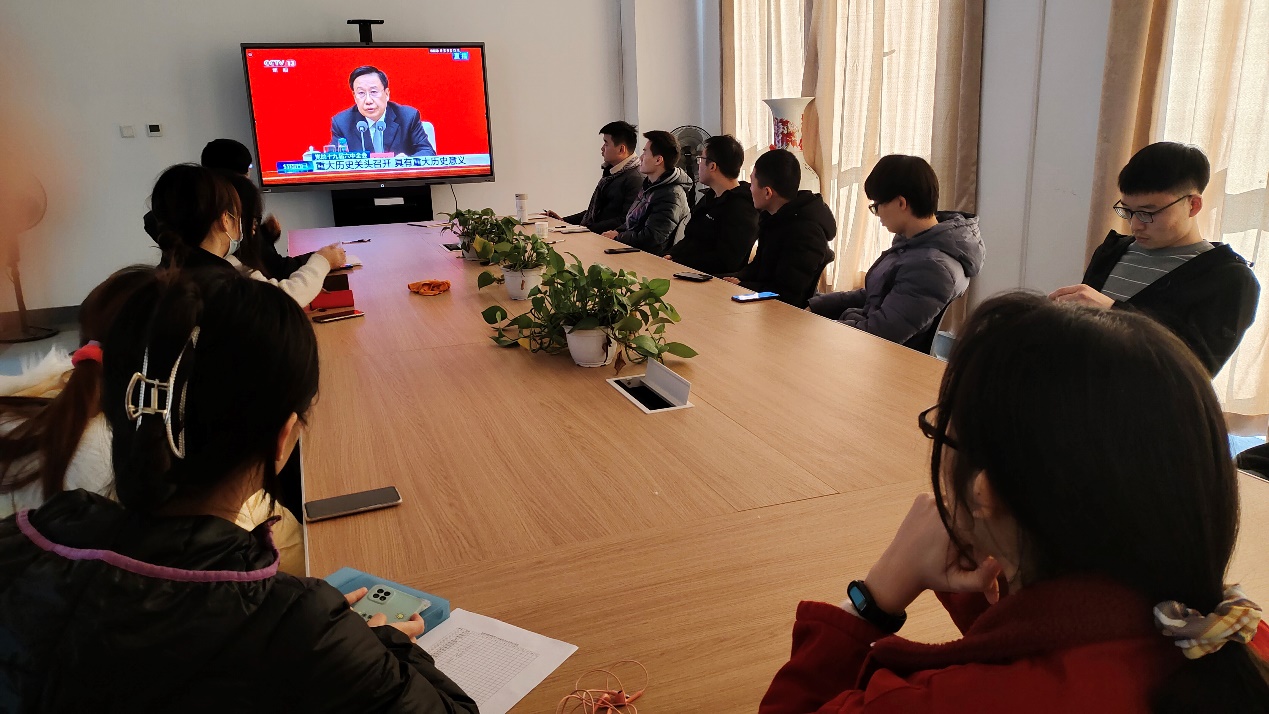 11月12日上午10时,中共中央举行新闻发布会,介绍党的十九届六中全会精神,回答记者提问。胜游体育(SYsports)官方网站入口书记杨小渭、师生各党支部代表分别在仲英楼B241、创新港4-2126观看直播,并对党的十九届六中全会精神介绍内容展开热议。