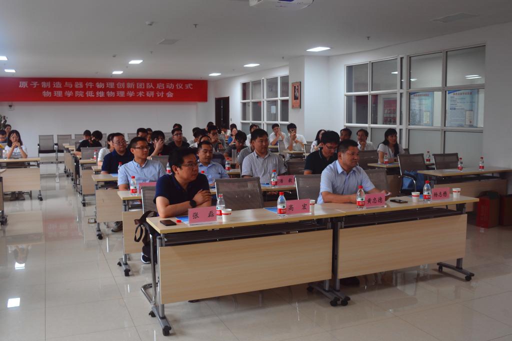 7月13日,胜游体育(SYsports)官方网站入口举办原子制造与器件物理青年创新团队启动仪式暨低维物理学术研讨会。科研院常务副院长黄忠德、人力资源部副部长张磊、胜游体育(SYsports)官方网站入口院长高宏、副院长杨志懋以及胜游体育(SYsports)官方网站入口师生代表参加活动,胜游体育(SYsports)官方网站入口王文慧副教授主持会议。