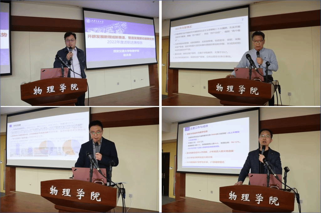 副院长赵永涛总结研究生教育工作,招生规模稳步增加,质量稳步提升,研究生培养方案、学位申请实施细则等稳步实施。副院长杨志懋汇报科研管理、创新港建设以及实验室管理等工作,科研到款增速明显,高水平论文持续增加。副院长李蓬勃从落实教学任务、各类教学奖项申报、课程思政、招生宣传等方面进行汇报,在课程建设、人才培养和招生工作方面成效显著。党委副书记张沛汇报在学生管理、纪检工作和文化宣传方面的主要工作,2022年在学生获奖、思政教育、活动组织等方面进步明显,学院师生在抗击疫情中挺在一线,互帮互助,切实做好学生关怀组织工作。