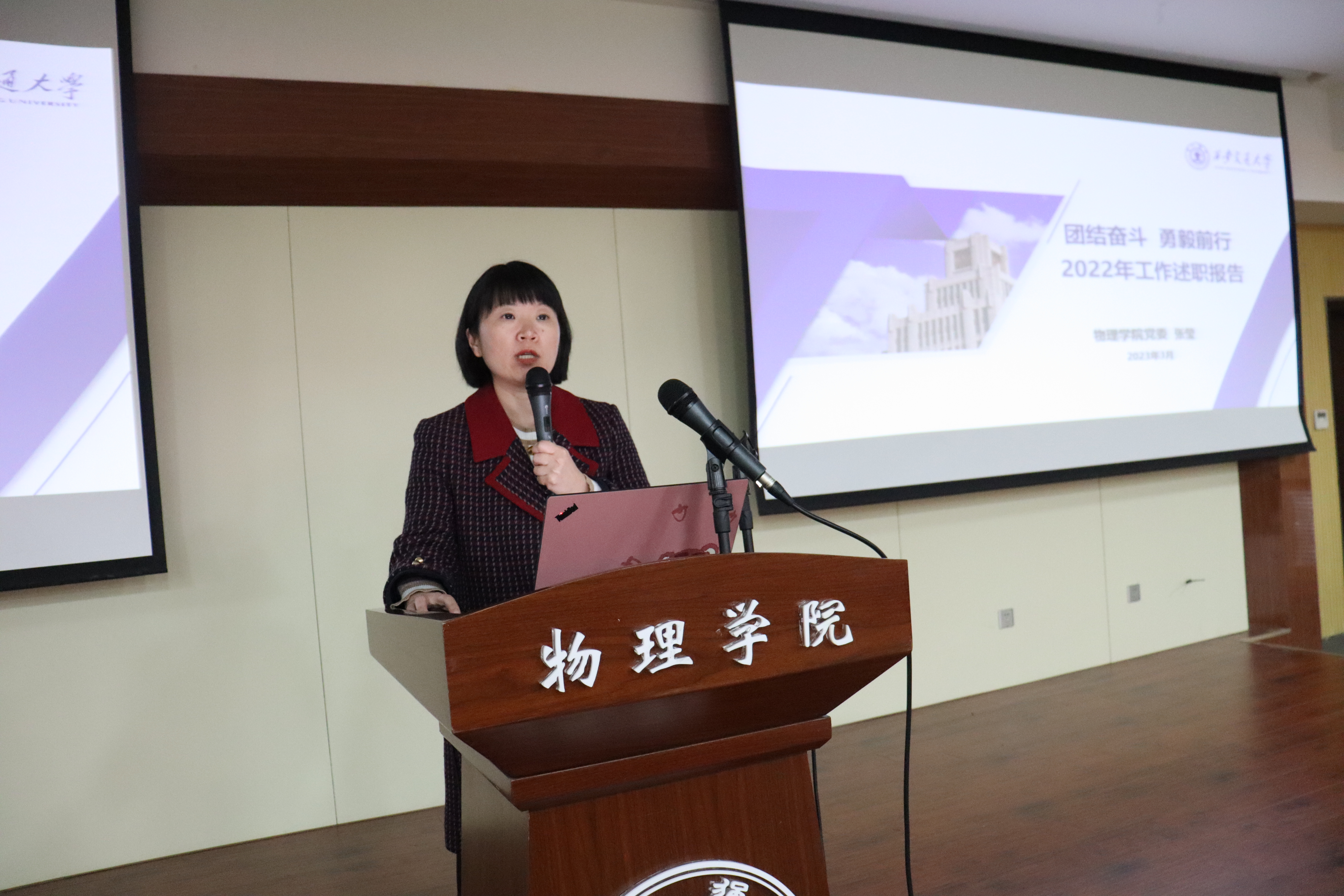 党委书记张莹结合个人工作实际进行述职述廉,同时向大会汇报了履行全面从严治党职责、开展党建工作情况。自履职以来,加强学院领导班子干部队伍建设,制定《约法十则》,提升班子凝聚力;加强学院教师队伍思想文化建设,师生积极性凝聚力进一步提升;加强双院育人、疫情防控和校园安全稳定工作,营造稳定发展的安全环境。2023年,将围绕以下八个方面重点开展工作:以加强党的领导为核心,完善基层组织建设,提高干部政治三力;以国家重大需求为牵引,凝练学科研究方向、突出前沿交叉融合;以一流学科建设为目标,夯实基础科学研究、强化基础人才培养;以立德树人任务为根本,守好安全稳定底线,做好学生思政教育;以人才引育并举为抓手,优化教师队伍结构、加强师德师风建设;以服务科技创新为基础,推动产教融合发展、建设科教融汇平台;以国际国内交流为窗口,扩大校地校企合作,拓展国际科研合作;以治理水平提升为保障,强化纪律制度规矩、提升服务能力本领。
