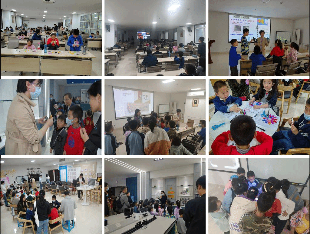 在物理趣味小实验环节,幼儿组小朋友探索了赫尔曼栅格错觉和毛细现象,通过制作神奇的衬衫和睡莲开花观察到了有趣的物理现象,艺术与科学相结合,寓教于乐,在物理实验中感受物理学的精妙。小学和中学组的同学用材料包按照图纸自行组装了声控小车,散碎的零件通过孩子们的巧手变成一辆辆可爱的小车,通过组装锻炼了孩子们的动手能力和独立思考能力。