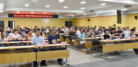 赵永涛教授首先代表学校和学院对2023届新生及家长表示欢迎,随后他从物理学是什么、如何学习物理学谈起,进而对学院的学科发展、专业培养、科学研究、师资队伍等情况做了详细介绍。徐慧老师对学校双院育人模式、书院的概况及学生工作特色做了阐述。李蓬勃教授对本科生培养方案及学籍管理方面的问题进行了解读。