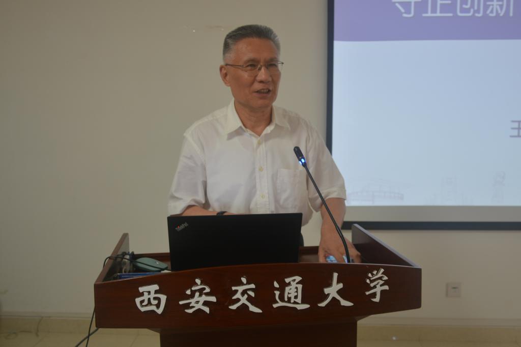 王小力以《守正创新、胜任教学、教书育人》为题做专题报告,他结合个人教学经历,从学院教学工作实际出发,回顾老一辈大先生严谨求实、严格要求、精益求精的教学传统,指出要成为一名合格的教师一是在守正中创新,对教书育人有敬畏之心;二是要传承西迁精神,不断锤炼教学本领,胜任教学工作;三是遵循教学规律,认真上好每一堂课,做到教书育人、立德树人。
