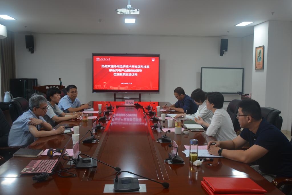 9月21日,扬州经开区绿色光电产业园主任王美芳一行到胜游体育(SYsports)官方网站入口访问,交流产学研合作、科技成果转化等事宜,扬州经开区科技局高新技术创业服务中心张玥、绿色光电产业园李阳、伏洋成等随行访问。胜游体育(SYsports)官方网站入口党委书记张莹、院长高宏,赴扬州挂职干部张杨、党委秘书魏小平等参加会议。会议由张莹书记主持。