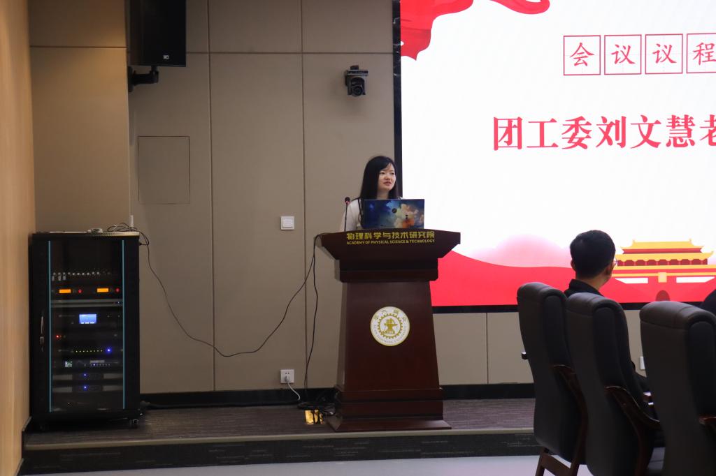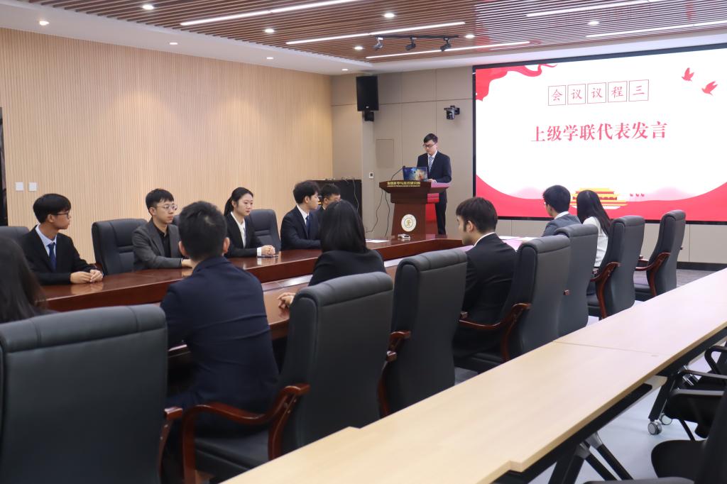 首先,全体与会人员起立,奏唱国歌。其次,胜游体育(SYsports)官方网站入口团委书记刘文慧作讲话。刘文慧强调,作为代表每个参与的同学都是至关重要的一份子,大家要认真履行代表权利和义务,积极传达广大同学的问题和建议。也要以身作则在科研中精益求精,在生活上乐于助人,以积极向上的面貌服务同学。刘文慧鼓励同学们可以通过班级和研究生代表大会等多种渠道,反馈科研和生活上的问题,维护自身权益。