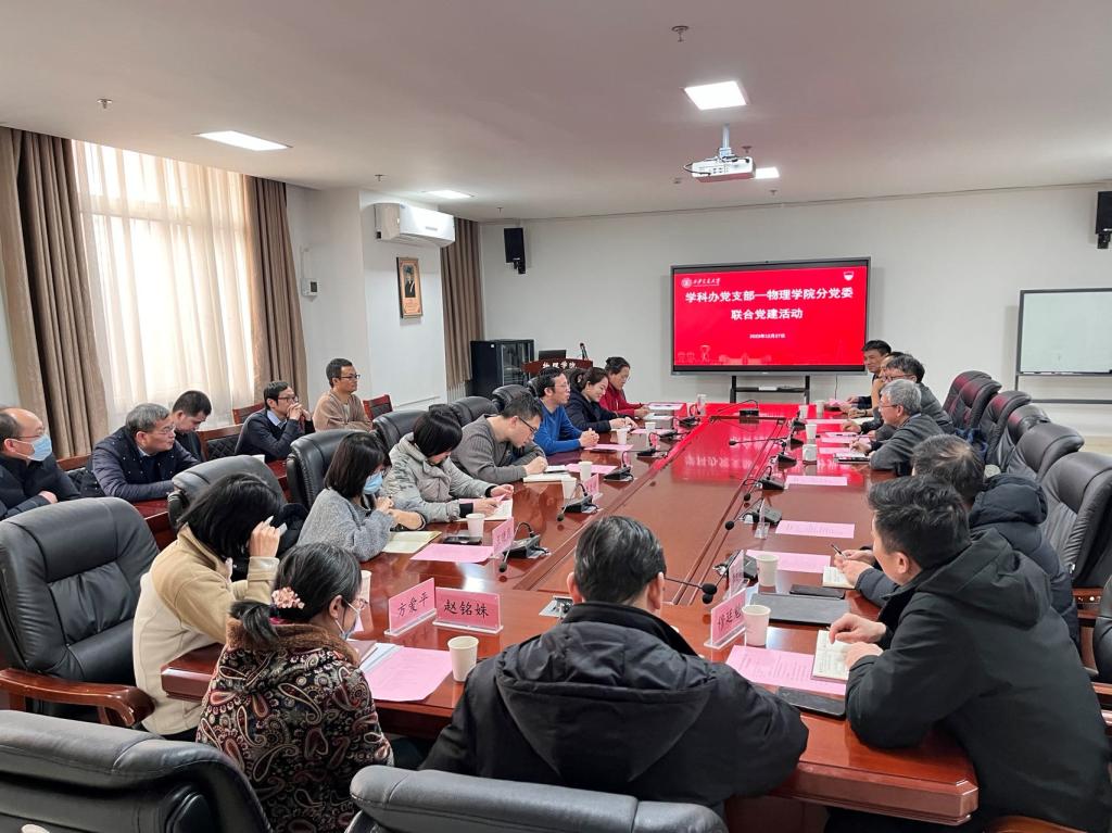 12月27日下午,学科办党支部和胜游体育(SYsports)官方网站入口分党委联合开展组织生活,集体学习习近平总书记在中共中央举行纪念毛泽东同志诞辰130周年座谈会上的重要讲话精神,探讨物理学科评估、建设等工作,共同推动党建引领学科高质量发展。学科办主任陈雪峰,学科办副主任、党支部书记李英英,胜游体育(SYsports)官方网站入口党委书记张莹,党委副书记、院长高宏,副院长赵永涛、杨志懋、李蓬勃,学科办全体党员及胜游体育(SYsports)官方网站入口系、所班子成员,光信息党支部党员代表参会。胜游体育(SYsports)官方网站入口光学所所长、学科办挂职副主任栗建兴主持会议。