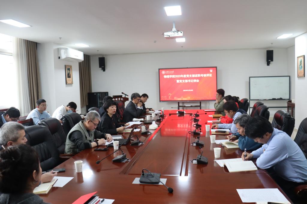 各党支部书记紧密结合支部主要工作,重点汇报党支部在学习贯彻党的二十大精神、扎实开展主题教育、引领推动业务工作以及运用“三张清单”破解难题等工作情况。材料物理党支部加强政治理论学习和青年教师帮扶引领,联合博士生、三峡集团等开展党组织共建活动;大物实物党支部将大学物理教学与党建工作深入融合,促进教学工作;应用物理党支部扎实开展主题教育,组织教工深入学习党的二十大精神;机关党支部开展特色活动,原原本本学习党的二十大精神,开展党组织共建活动。胜游体育(SYsports)官方网站入口励志书院物理和强基师生联合党支部开展丰富多彩的党员活动,贯彻“三会一课”制度,开展暑期党员实践,取得实效;硕士生党支部充分发挥党员先锋模范作用,开展志愿服务活动,发起抗震救灾捐款等,教育党员,服务社会;博士生党支部将党组织生活与科研工作有机结合,充分发挥党建引领带动作用,多名党员在中国大学生自强之星、互联网+大赛、王大珩光学奖、研究生标兵、国家奖学金等中获得表彰奖励。