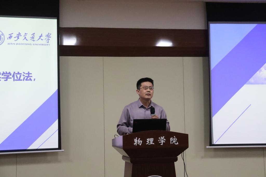 学位办主任陈永华随后以“学习贯彻落实学位法,把好学位论文质量关”为主题作报告。他详细解读了《学位法》,并说明了西安交通大学学位管理办法及相关条例。他号召学院研究生导师要把好学位论文质量关,实现国抽检、省抽检、校抽检零问题。
