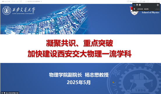 5月24日,第十一届丝绸之路青年学者春季研讨会物理分论坛顺利召开。来自新加坡国立大学、意大利国家研究委员会、慕尼黑工业大学、西北有色金属研究院等单位的青年学者共聚云端,与学院师生开展深度学术对话。学院副院长杨志懋教授、各系所负责人及学院20余位师生代表参加了本次论坛,会议由现代光学研究所所长穆廷魁教授主持。