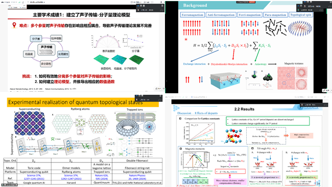 会议第二阶段,参会学者分别围绕超拉伸高分子热传导理论及物理化学性质、自旋电子学相关计算模拟、凝聚态物理与量子信息的交叉方向、极化半金属磁性能调控等多个研究方向,为学院师生带来了精彩的学术报告。交流环节中对相关领域的关键科学问题及国际学术前沿动态展开了热烈讨论。