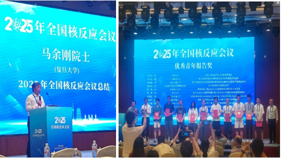 7月3日闭幕式上,复旦大学马余刚院士作总结发言,并同中国科学院近代物理研究所副所长王猛研究员一起为“优秀青年报告奖”获得者颁奖。