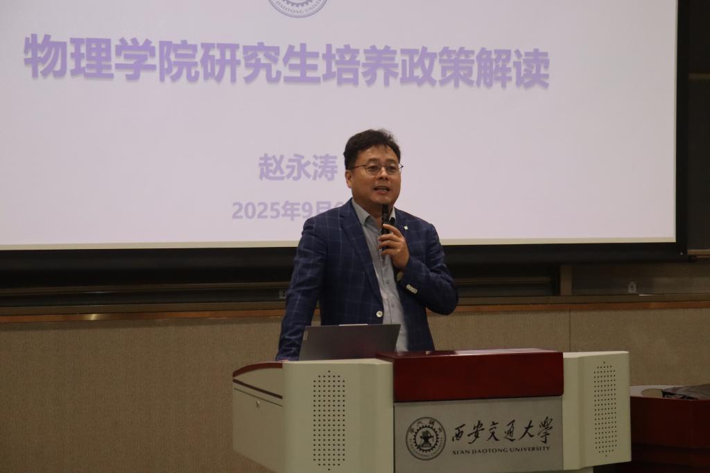 赵永涛从学籍管理、奖助体系、学位申请、论文质量保障、“三助一辅”等几个方面详细解读了研究生培养政策,为新生今后的学习科研提供了清晰的指引。他通过具体案例向同学们强调了学术规范与论文质量的重要性。他鼓励同学们早做规划、勤于思考、积极交流,充分利用校内外各种资源,争取全面发展。