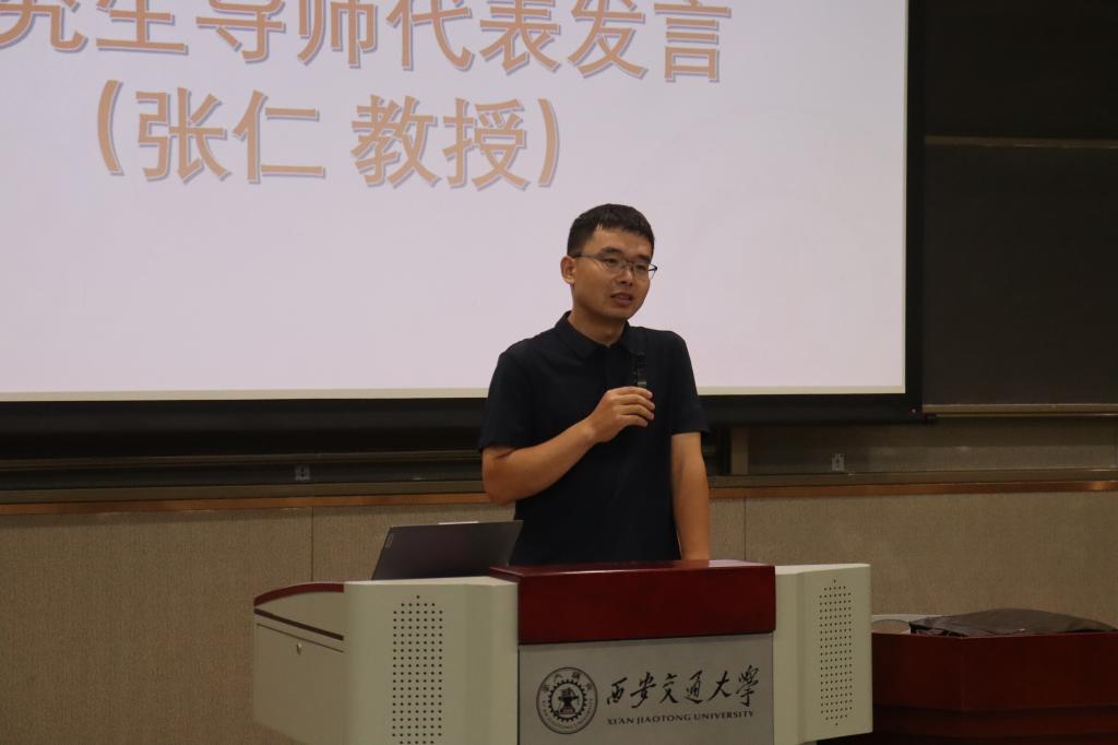 研究生导师代表张仁教授与新生们分享了研究生成长的建议。他鼓励同学们在攻坚克难中锤炼扎实的科研能力,同时要注重培养团队协作精神与有效沟通能力。他希望同学们在奉献国家、服务集体的道路上坚定前行,最终成就自我、收获精彩的研究生生涯。