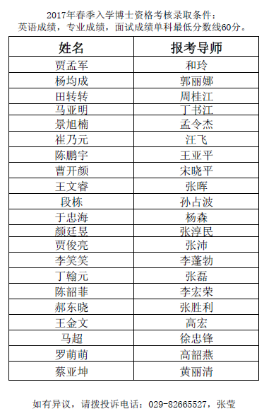 2017年春季入学博士资格考核拟录取名单
