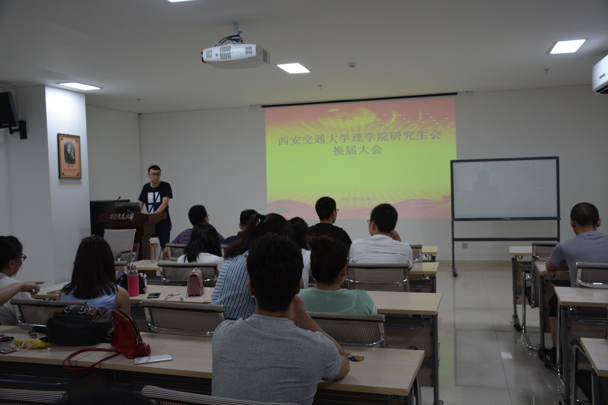 6月26日下午,西安交通大学理学院研究生会换届选举会议在仲英楼B253教室召开,研会主席团、各部门部长及部分研会成员参加了会议,团委书记魏小平老师出席。会议由研会办公室主任芦瑞琪主持。
