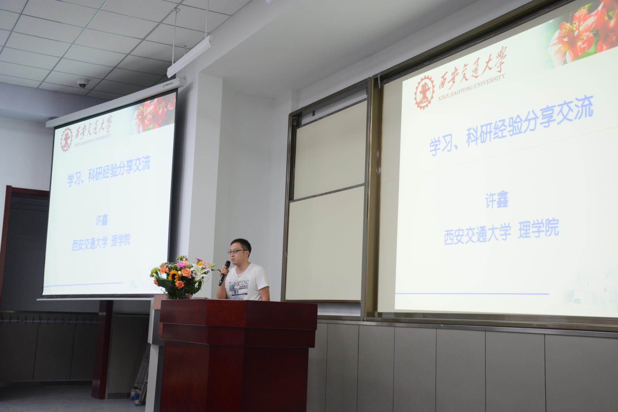 西安交通大学研究生标兵许鑫,以一个学长的身份,从自己的大学生活讲起,向学弟学妹们分享了自己学习、科研的经验,同时介绍了阅读专业文献的技巧,并与大家交流了做实验与发文章之间协调的方法。