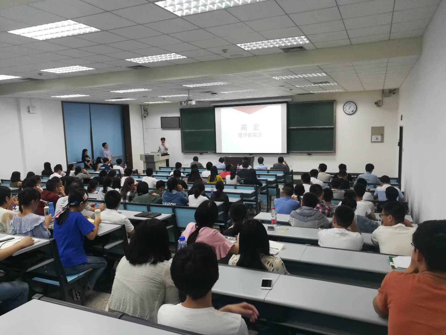 9月8日晚上,“理学院2018级研究生新生开学典礼暨入学教育”隆重举行。理学院党委书记郑元锁、院长高宏、副院长张志成以及学科干部、师生代表与理学院2018级研究生新生共同参加。会议由徐四龙老师主持。