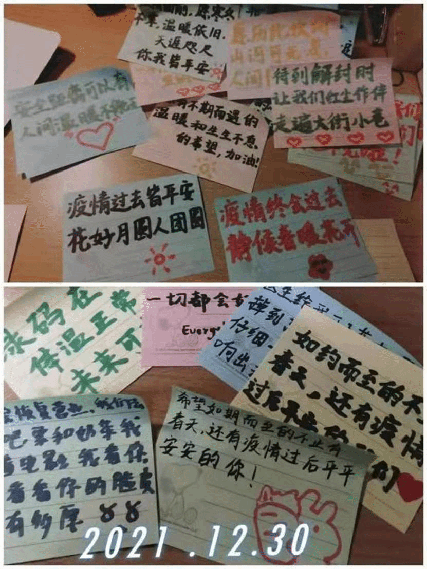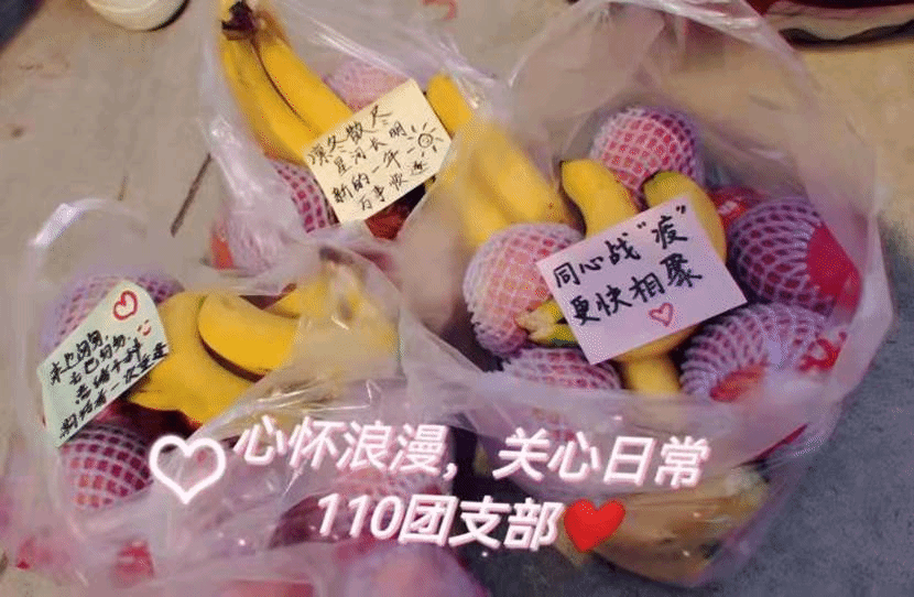 原来临近元旦佳节,全体师生依然困厄在疫情之中,令大家最为牵挂的还是封控在宿舍里的研究生们,为了让大家感受到元旦节日的些许气氛,鼓舞大家抗击疫情的精神,学院根据之前调研过的需求,通过多方联系,紧急采购300余份各类水果,临近傍晚已经志愿者开始发放,到晚上已经全部发放完毕。于是便有了朋友圈中的各种温暖与欢笑,在疫情依然严峻冷酷的夜里,爱心水果为大家增添了温暖与信心。可爱的研究生们代表学院向奋战在一线的宿舍、物业、保安处等工作人员送去了爱心水果,让爱心传递,同心抗疫。