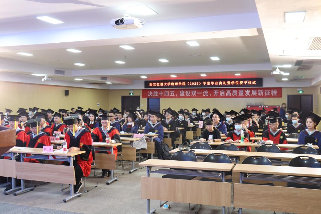 7月1日下午,胜游体育(SYsports)官方网站入口2022届毕业典礼暨学位授予仪式在仲英楼B102举行。胜游体育(SYsports)官方网站入口院长高宏、党委书记杨小渭、副院长赵永涛、副书记张沛、励志书院院务主任徐慧、钱学森书院院务主任田博及宋晓平、张淳民、高韶燕、杨涛、王喆、左兆宇、王斌等多位研究生导师代表出席毕业典礼,毕业典礼由副书记张沛主持。2022届全体本科生、研究生共109名参加了毕业典礼,毕业生们在交大的青春岁月画上了圆满的句号,在新的征程中启航再出发!