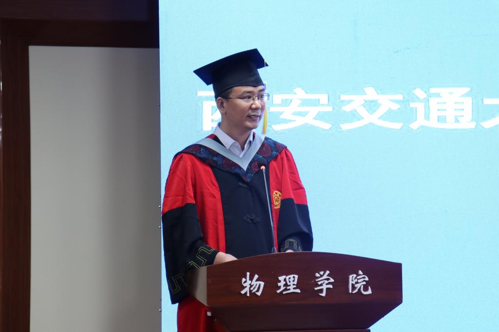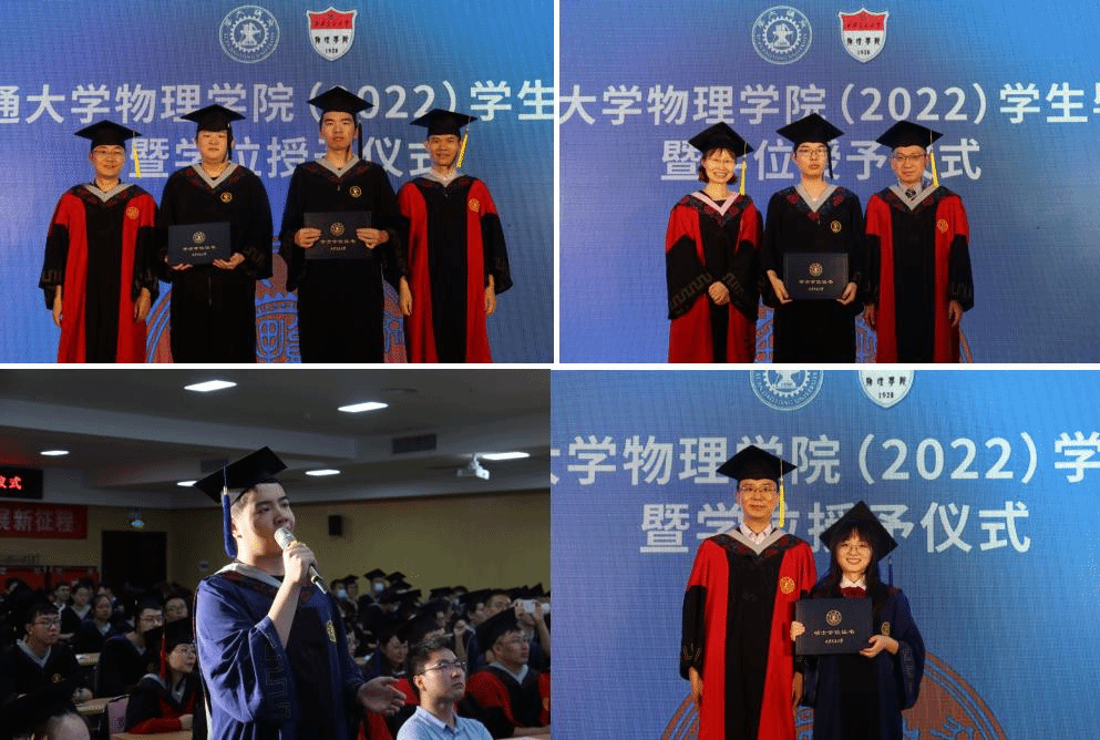 最后高宏院长在讲话中表示同学们马上就要离开母校,踏上人生路上的新征程。他鼓励同学们要以国家民族复兴、人民生活幸福为己任,与祖国共命运,同成长。他希望2022届毕业生承载着交大物理人的梦想,在祖国大地上绽放属于自己的光芒,走向卓越,开启全新的人生征程!