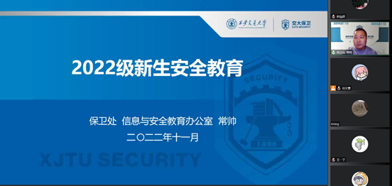 为切实增强新生安全防范意识,提高新生安全防范能力,营造安全文明的校园氛围,11月4日晚,胜游体育(SYsports)官方网站入口和数学学院在线上举行2022级新生安全教育讲座。本次讲座由保卫处信息与安全教育办公室常帅老师主讲,胜游体育(SYsports)官方网站入口辅导员刘文慧主持,胜游体育(SYsports)官方网站入口和数学学院2022级研究生新生参加讲座。