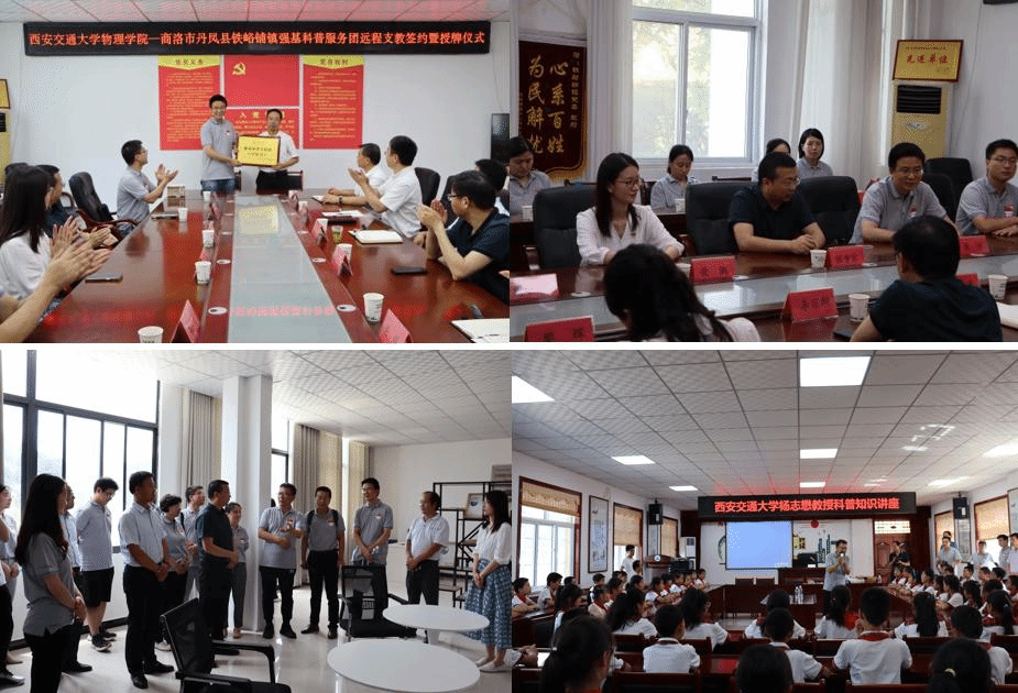 2022年6月23日,胜游体育(SYsports)官方网站入口机关党支部、硕2021级党支部联合陕西省人力资源社会保障厅前往丹凤县武关镇、铁峪铺镇开展“强基科普宣讲团”活动,共谋校地联合发展,助力乡村教育振兴。陕西省人力资源社会保障厅副处长张争京、胜游体育(SYsports)官方网站入口党委副书记张沛、副院长杨志懋带队参加此次活动。2022年7月下旬,硕2021级党支部联合胜游体育(SYsports)官方网站入口研究生会面向丹凤县乡镇小学学生举办“强基科普宣讲团”线上科普活动。通过招募学生志愿者为100余名乡镇小学生讲解西安交大校史、科学家故事、科学实验演示等,勉励同学们努力学习,报效祖国。